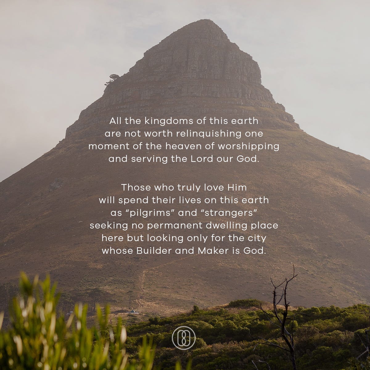 Living as pilgrims in this life is not a loss. It is freedom! When our hearts are fixed on God’s eternal Kingdom, the power and riches and pleasures of this world lose their grip on us. We will stop grasping after what will not last.